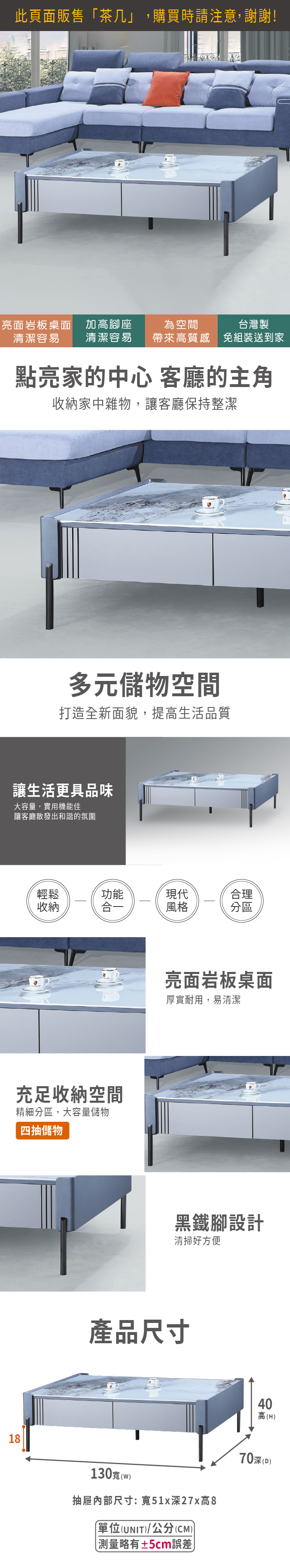 奧斯蒙4.3尺岩板大茶几(寬130x深70x高40cm)