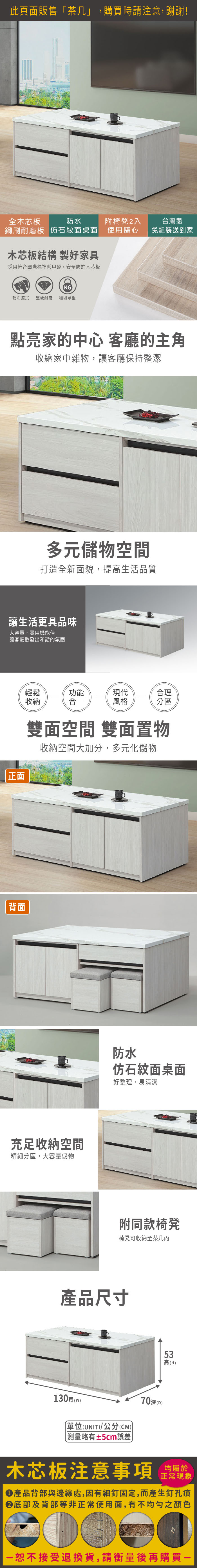 威尼4.3尺大茶几(含2椅凳)(寬130x深70x高53cm)