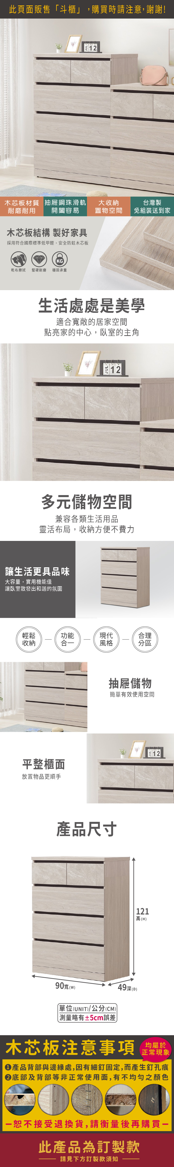 橫玫五斗櫃(寬90x深49x高121cm)(訂製款)