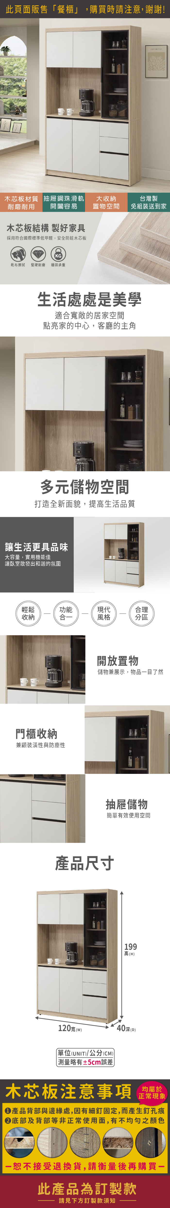 若玫4尺餐櫃全組(寬120x深40x高199cm)(訂製款)
