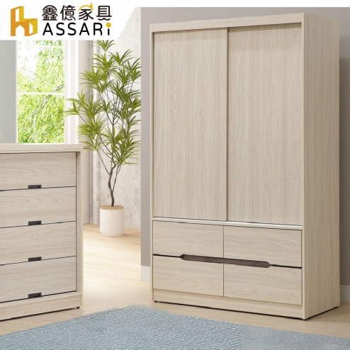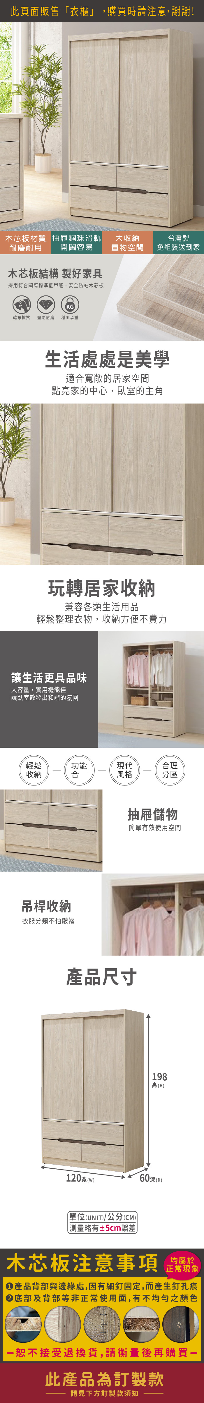 橫玫4尺推門衣櫃(寬120x深60x高198cm)(訂製款)