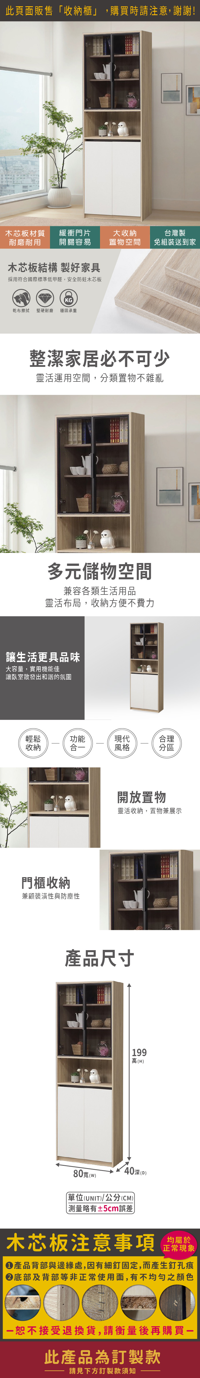若玫2.7尺四門收納櫃(寬80x深40x高199cm)(訂製款)