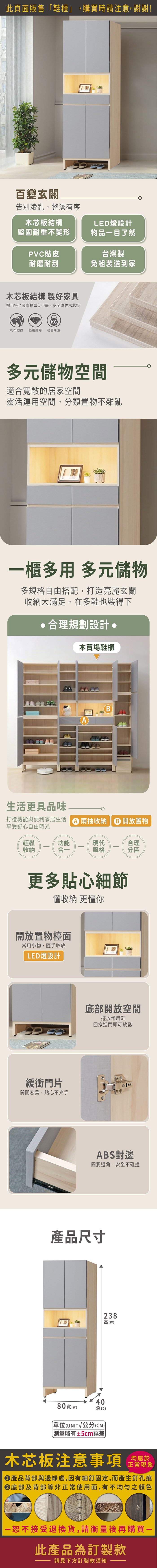 水芳2.7尺LED燈高鞋櫃(寬80x深40x高238cm)(訂製款)