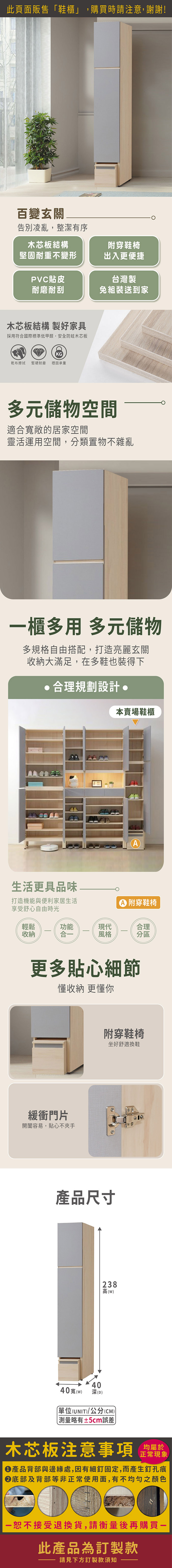 水芳1.3尺高鞋櫃-附穿鞋椅(寬40x深40x高238cm)(訂製款)