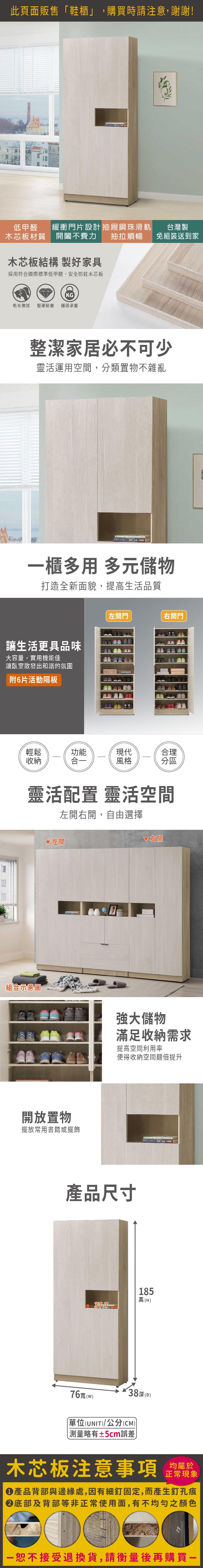 庫克2.5尺三門高鞋櫃(寬76x深38x高185cm)