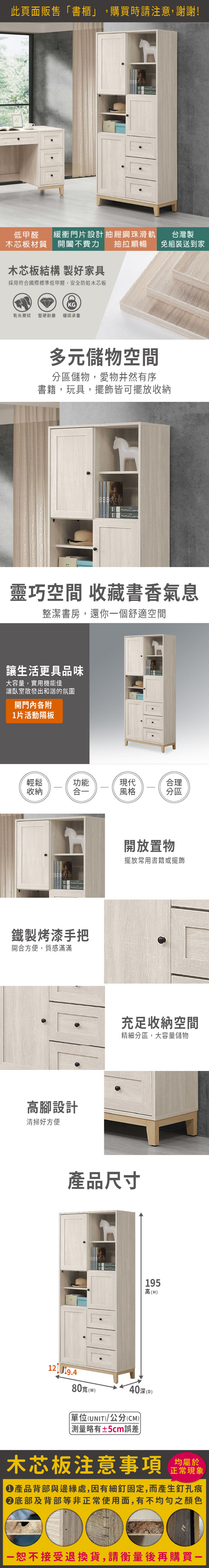 維特2.7尺三門書櫃(寬80x深40x高195cm)