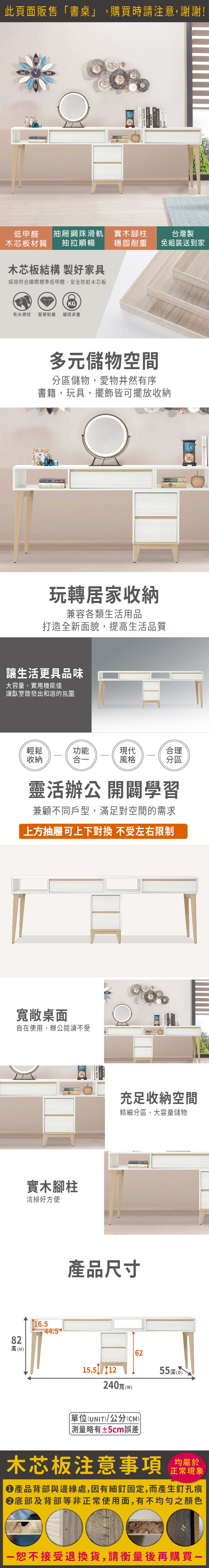 洛蒂8尺雙人書桌(寬240x深55x高82cm)