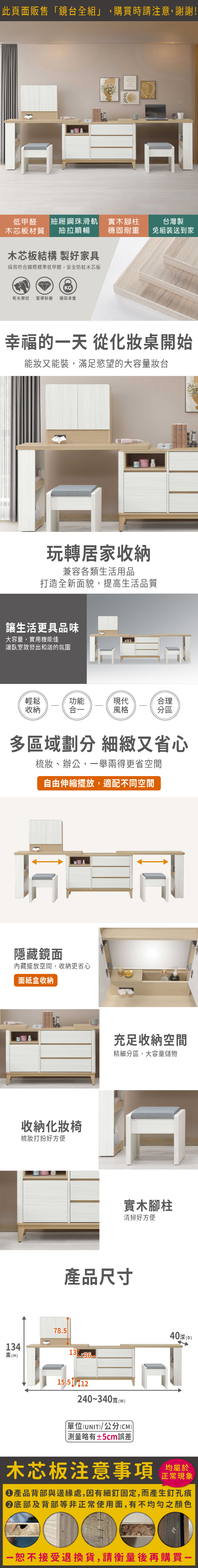 洛蒂8尺多功能伸縮鏡台全組(寬240~340x深40x高134cm)