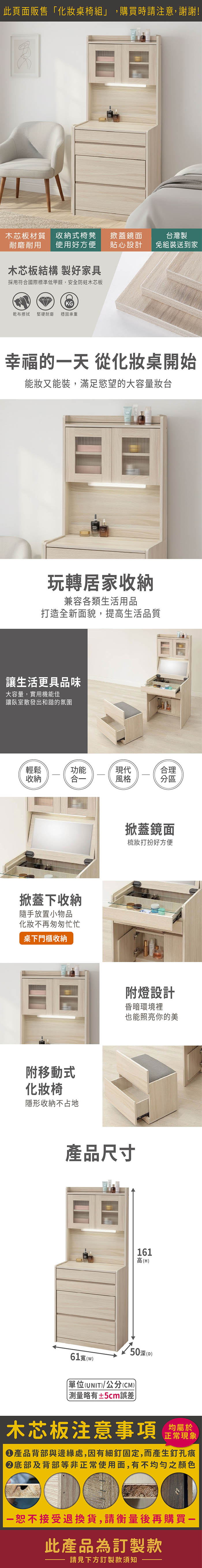 極簡風2尺化妝桌椅組(寬61x深50x高161cm)(訂製款)