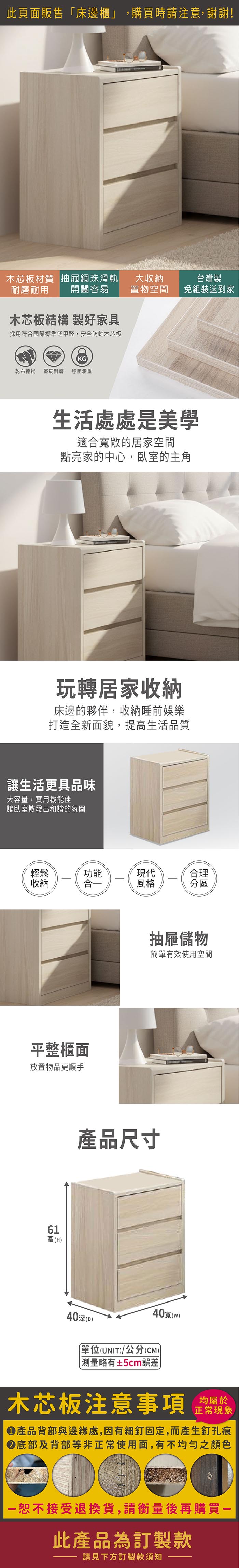極簡風床邊櫃(寬40x深40x高61cm)(訂製款)