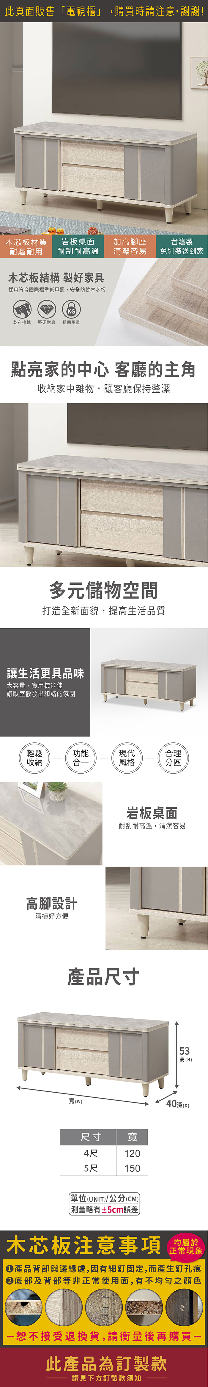 歐力5尺岩板電視櫃(寬150x深40x高53cm)(訂製款)