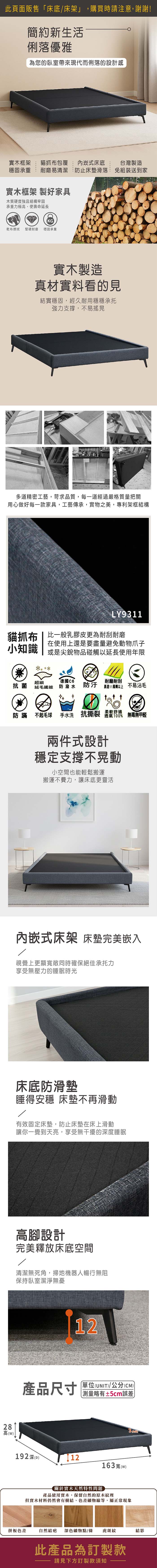 亞格斯貓抓布內崁式床底/床架(雙人5尺)(訂製款)