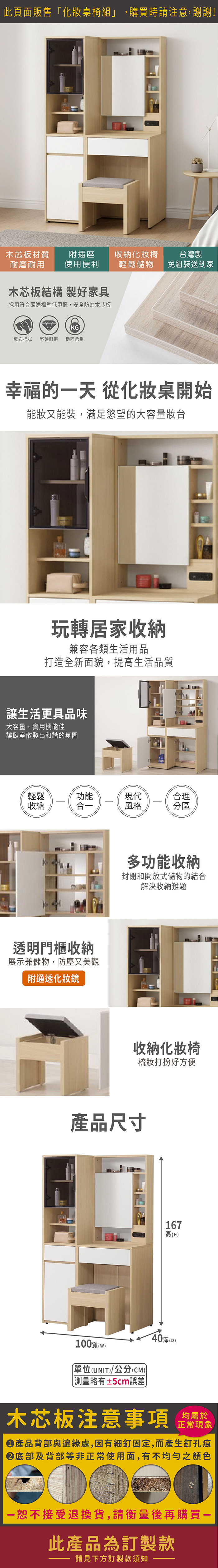 卡蘿經典3.3尺化妝桌椅組(寬100x深40x高167cm)(訂製款)