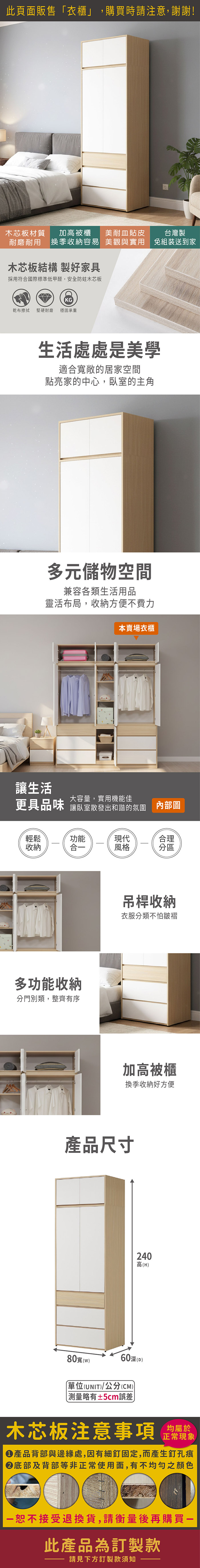 卡蘿經典2.7尺加高單吊衣櫃(寬80x深60x高240cm)(訂製款)