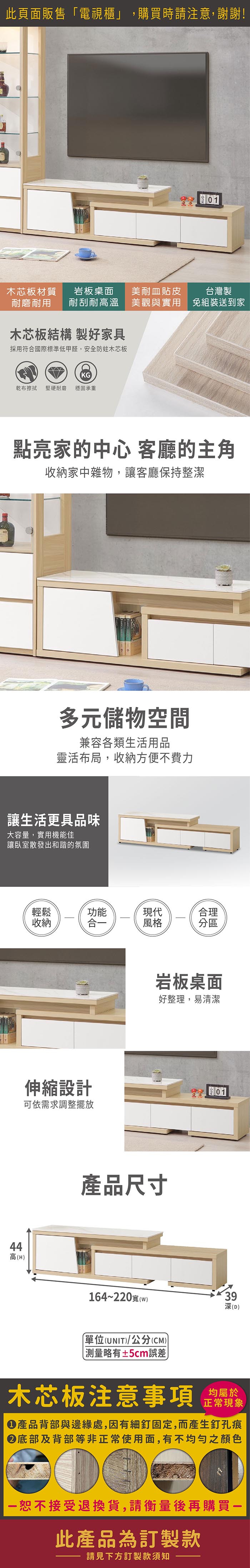 卡蘿經典5.5尺伸縮岩板電視櫃(寬164~220x深39x高46cm)(訂製款)