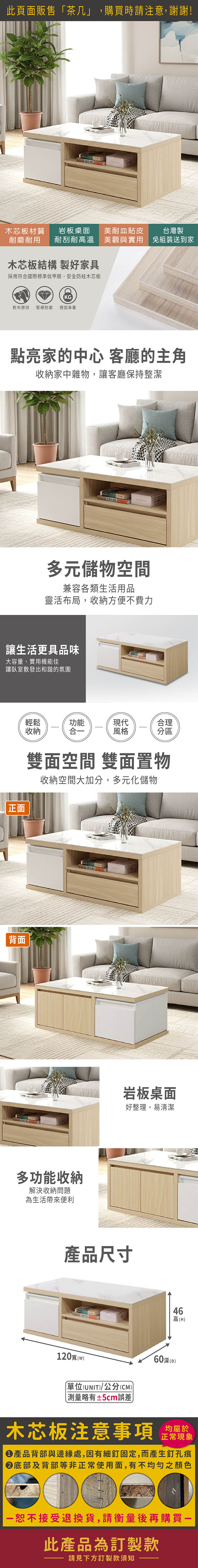 卡蘿經典4尺岩板大茶几(寬120x深60x高46cm)(訂製款)