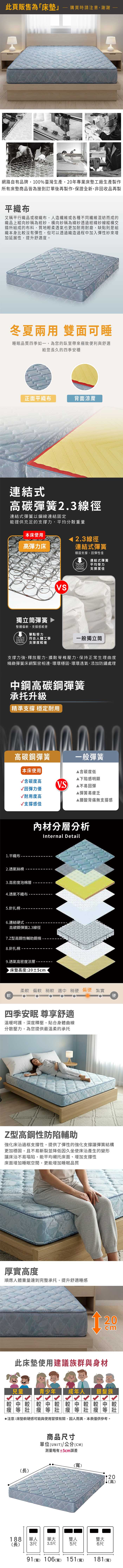 艾莉藍緹花護背式冬夏兩用彈簧床墊-雙人5尺