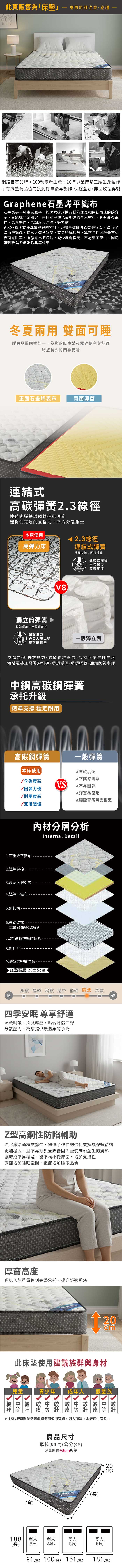 艾文石墨烯護背式冬夏兩用彈簧床墊-雙人5尺