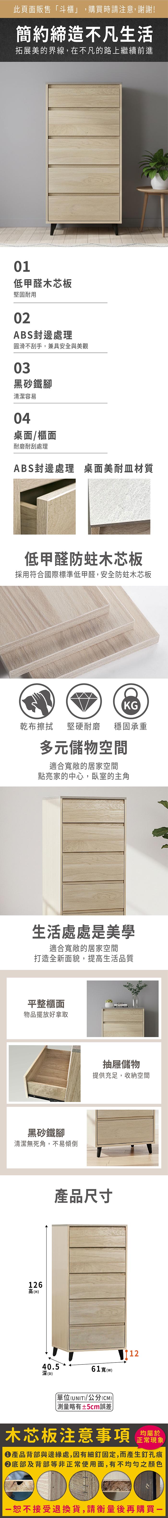 安琪2尺五斗櫃(寬61x深41x高126cm)
