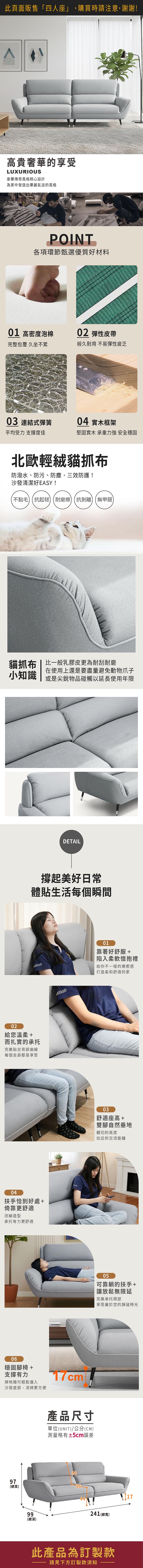 艾多耐磨四人座貓抓布沙發(訂製款)