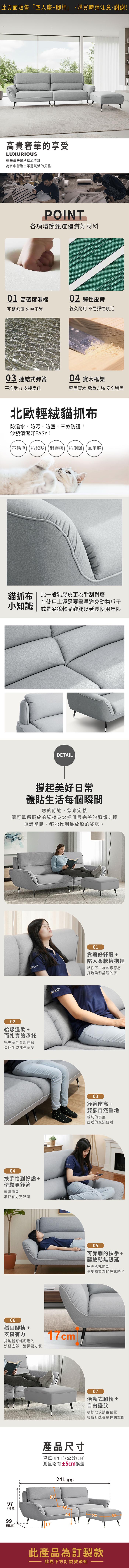 艾多耐磨L型貓抓布沙發(四人座+62x78cm腳椅)(訂製款)