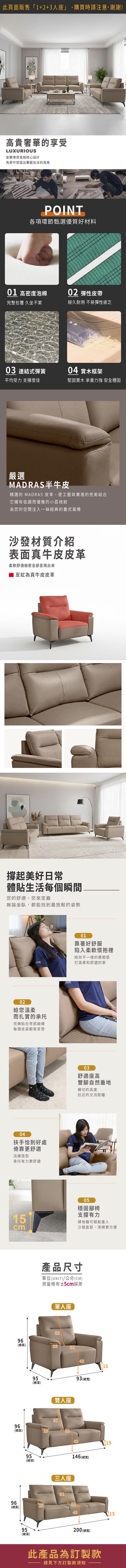 馬勒尊貴1+2+3人座半牛皮沙發(訂製款)