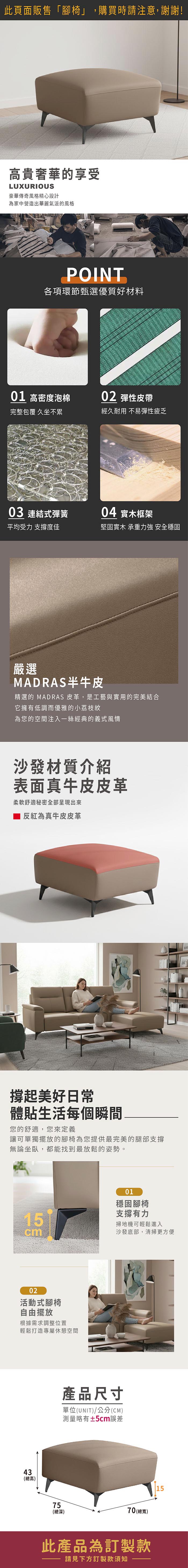 馬勒尊貴半牛皮腳椅(75x70cm)(訂製款)