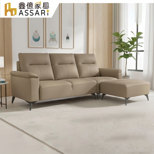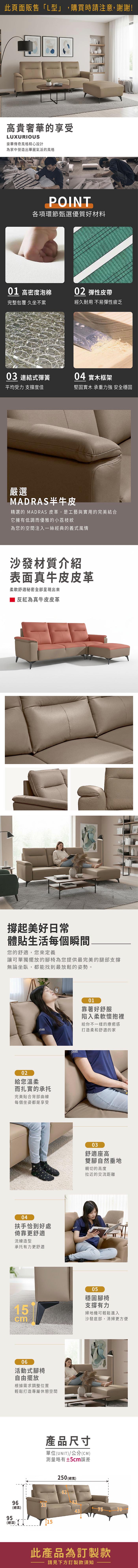 馬勒尊貴L型半牛皮沙發(四人座+75x70cm腳椅)(訂製款)