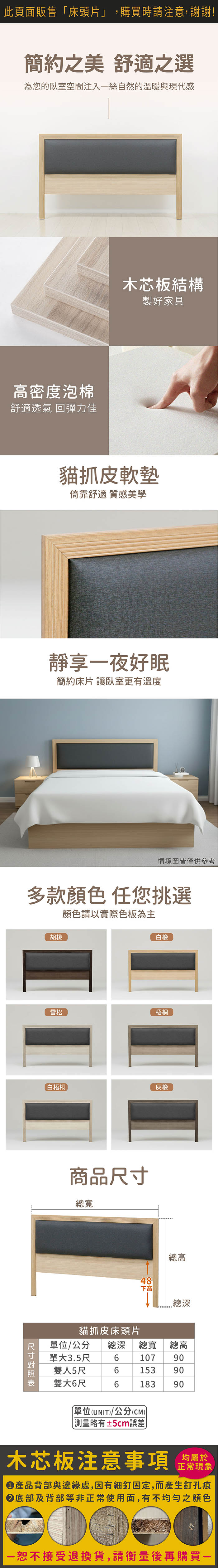 雅緻貓抓皮床頭片-單大3.5尺